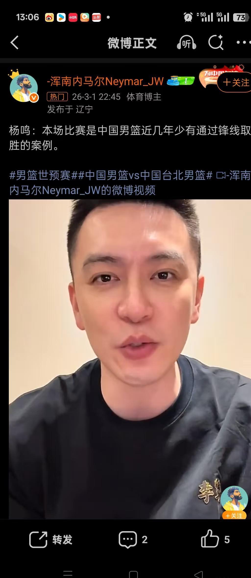 体育赛事-破案了!中国男篮依靠谁逆转了台北队?杨鸣发视频道出三人名字